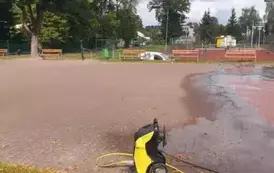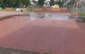 Trwa czyszczenie boiska za Szkołą Podstawową nr 1 przy ul. Chopina w Złocieńcu. Niedawno wymieniono tak ogrodzenie, którego stan stwarzał zagrożenie dla uczniów. Niebawem zostaną także zamontowane nowe piłkochwyty.